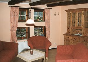 Der reetgedeckte Fachwerkspeicher (130 m2, Landhaus 2) wurde 2002/03 als Ferienhaus komplett neu eingerichtet.